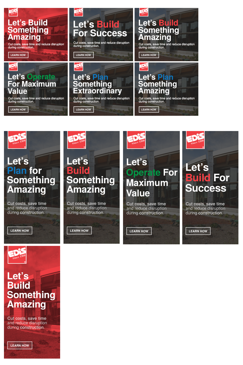 Minor modifications to core display ads to make relevant for different types of queries and highlight branding of service phases.